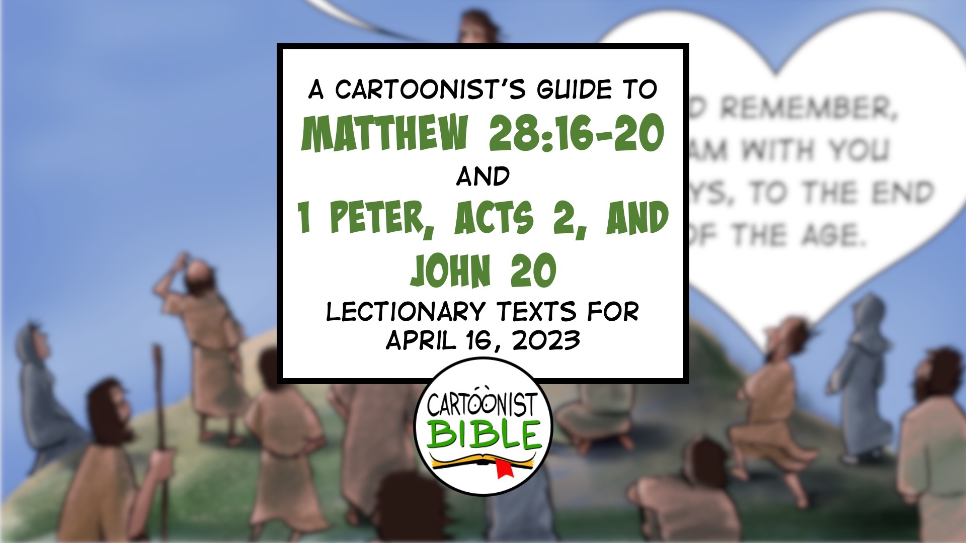 This post offers visual resources for the Revised Common Lectionary and the Narrative Lectionary for April 16, 2023. This is the first Sunday after Easter. The Narrative Lectionary wraps up the Gospel of Matthew with the Great Commission. The RCL launches us into the book of Acts and a mini-series on 1 Peter.