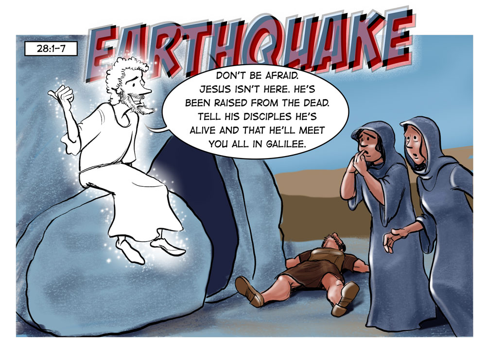 There will be no distinction between lectionaries in this post. Below is the Revised Common Lectionary texts with links. Below that is A Cartoonist’s Guide to the Resurrection according to Matthew.