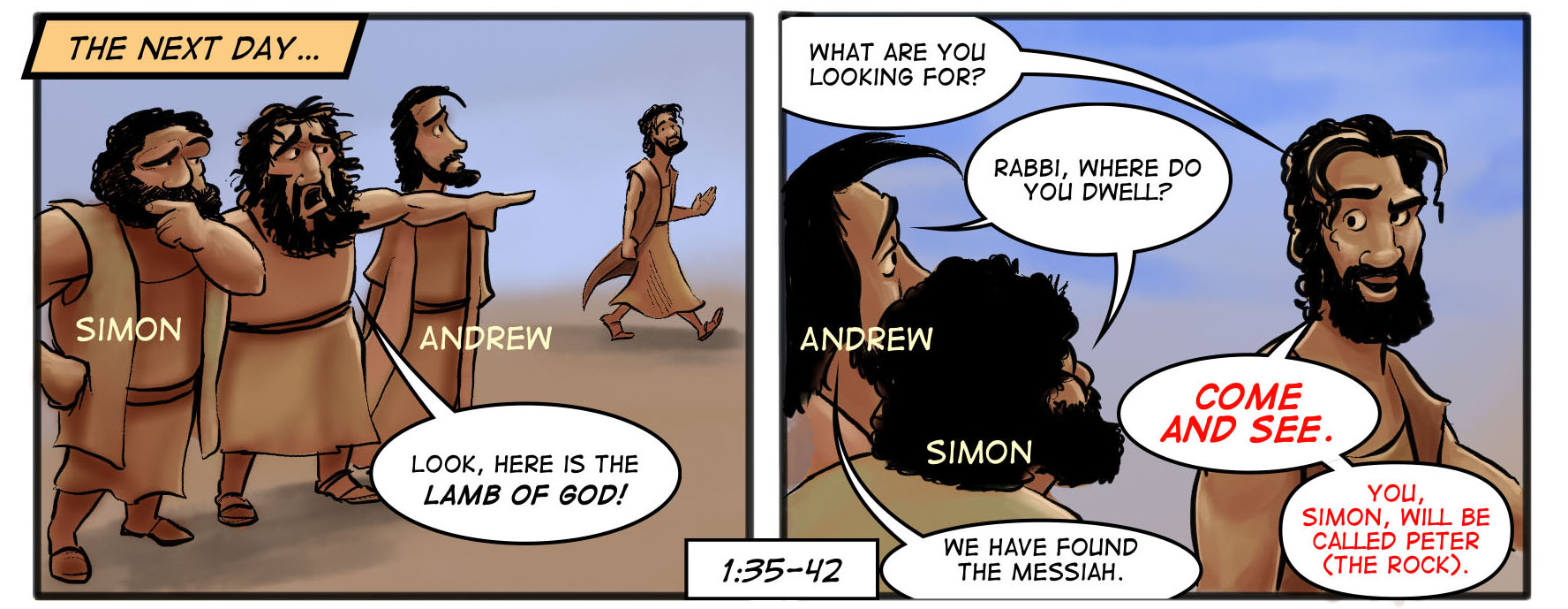Although this year we draw from the Gospel of Matthew in the RCL, there are moments when we jump to the Gospel of John (John does not get its own year in the lectionary). John sees Jesus approaching him in the wilderness and proclaims, “Behold, the Lamb of God who takes away the sins of the world!” Then he introduces his disciples, Andrew and Simon, to Jesus and they decide to follow him.