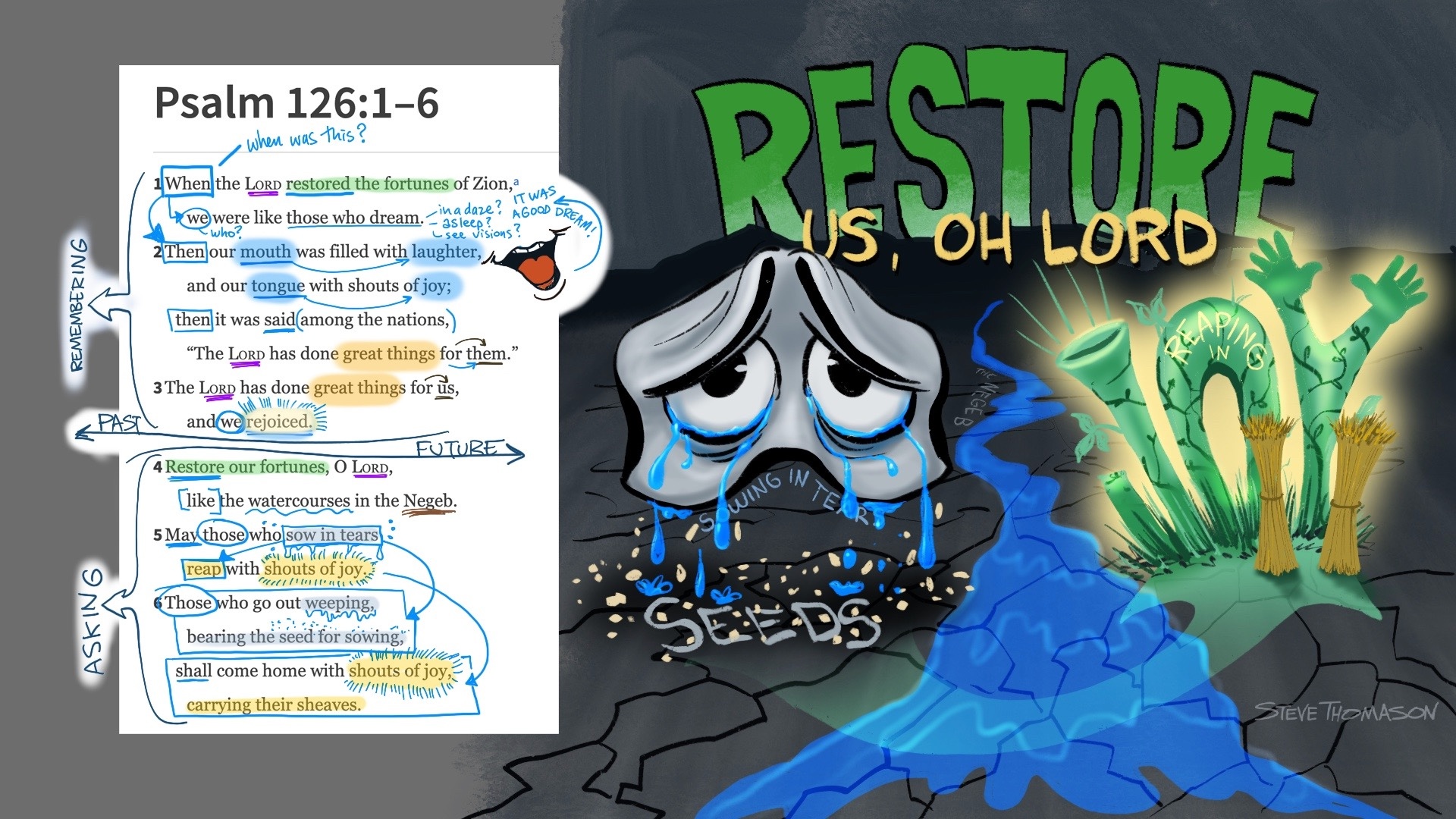 This post offers visual resources for the Revised Common Lectionary and the Narrative Lectionary for December 17, 2023. This is the third week of Advent. We light the candle of JOY. The RCL takes us to Isaiah, Psalms, 1 Thessalonians, and John to offer texts that explore the mixture of tears and joy. The NL takes us to Ezra were we see the restoration of the temple after the Exile and another mixture of joy and tears.
