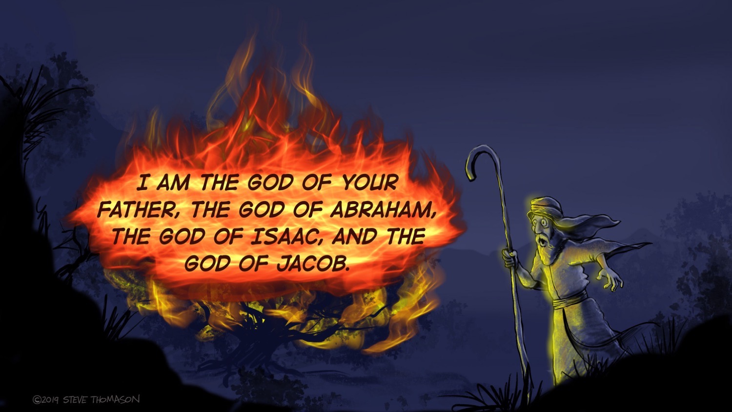 Here is a bonus image. Jesus counters the Sadduccees attacks by quoting the story of Moses and the burning bush. God reveals Godself as the God of Abraham, Isaac, and Jacob. God is among the living, not the dead. Feel free to right click and “save as” this image to use it, or get it in the full Exodus 3 PowerPoint HERE.