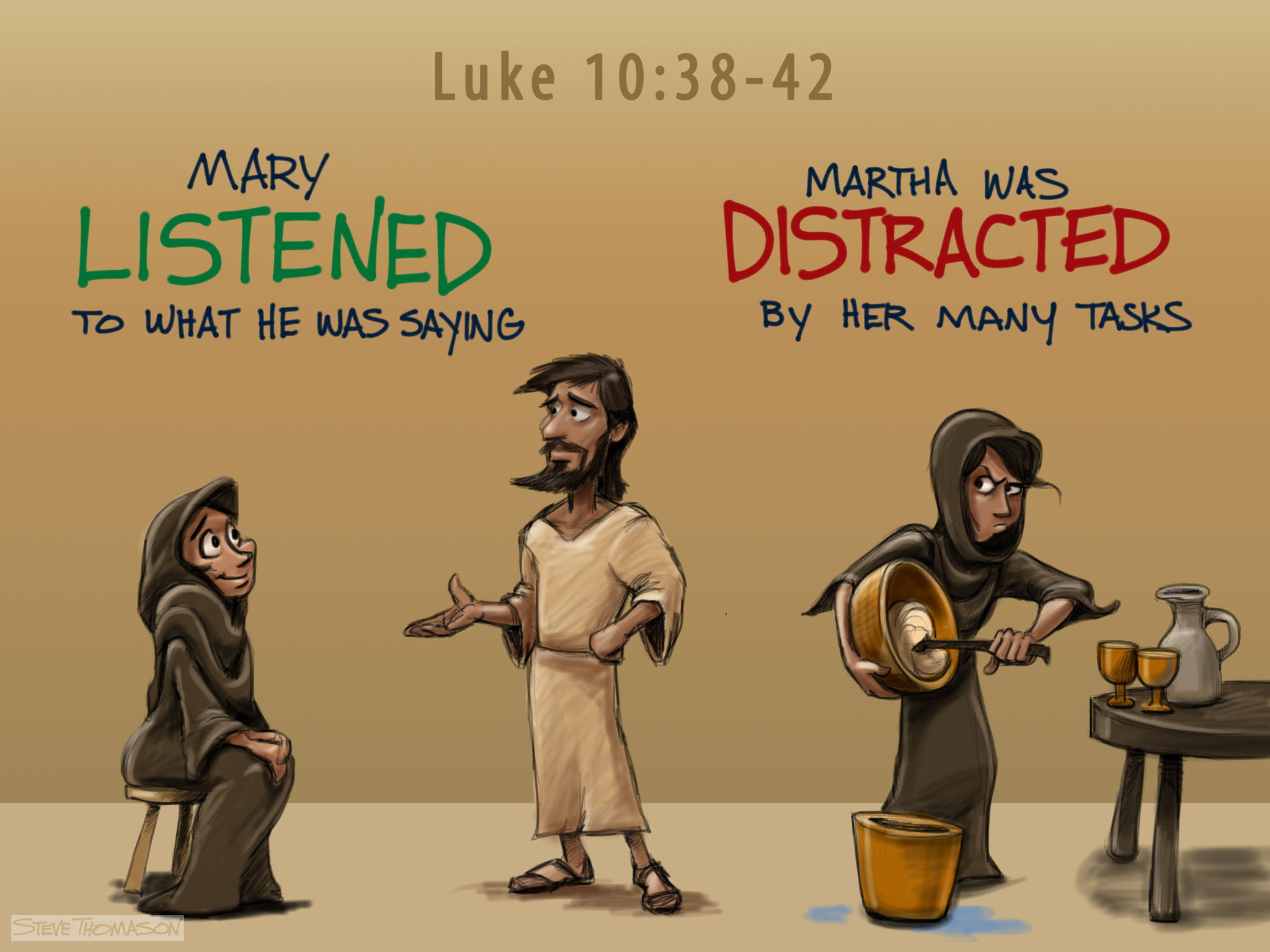 This image comes from a sermon I did on distractions when the Narrative Lectionary combined the Mary and Martha story with the parable of the Good Samaritan.