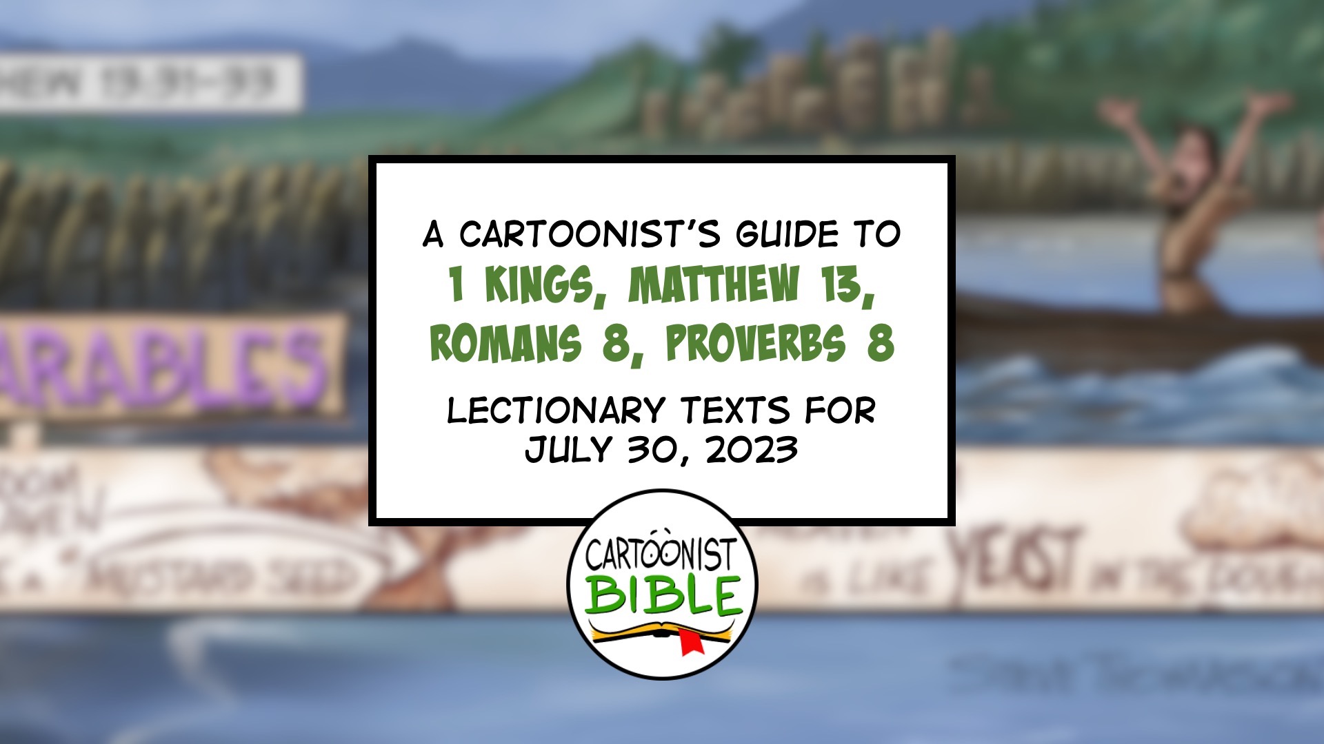 This post offers visual resources for the Revised Common Lectionary and the Narrative Lectionary for July 30, 2023. The RCL is continuing a mini-series in the Parables of Jesus, along with a look at the wisdom of Solomon in 1 Kings and the continuation of Genesis and Romans. The NL is continuing Proverbs this week and pulls from John 8 for the Gospel reading.