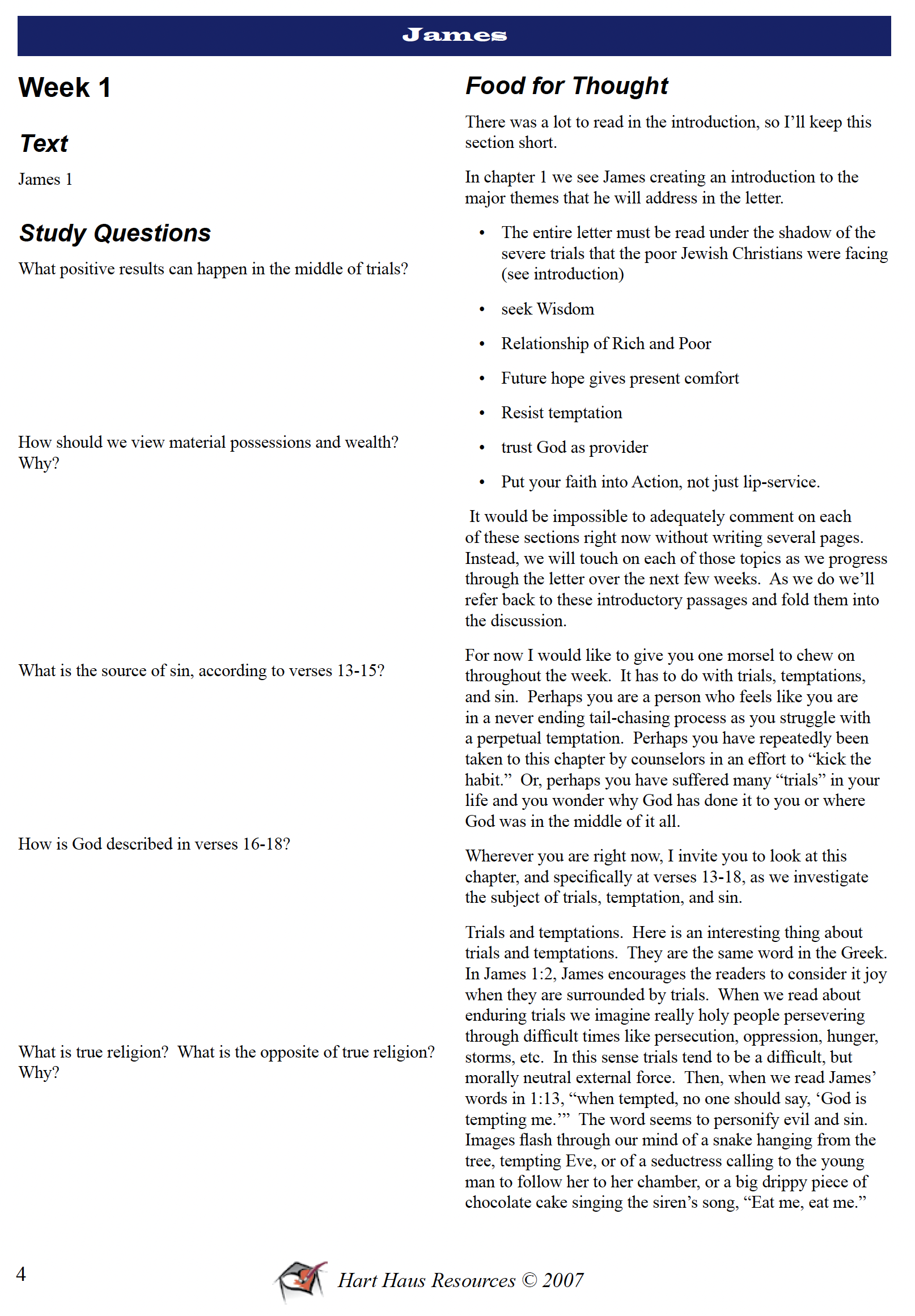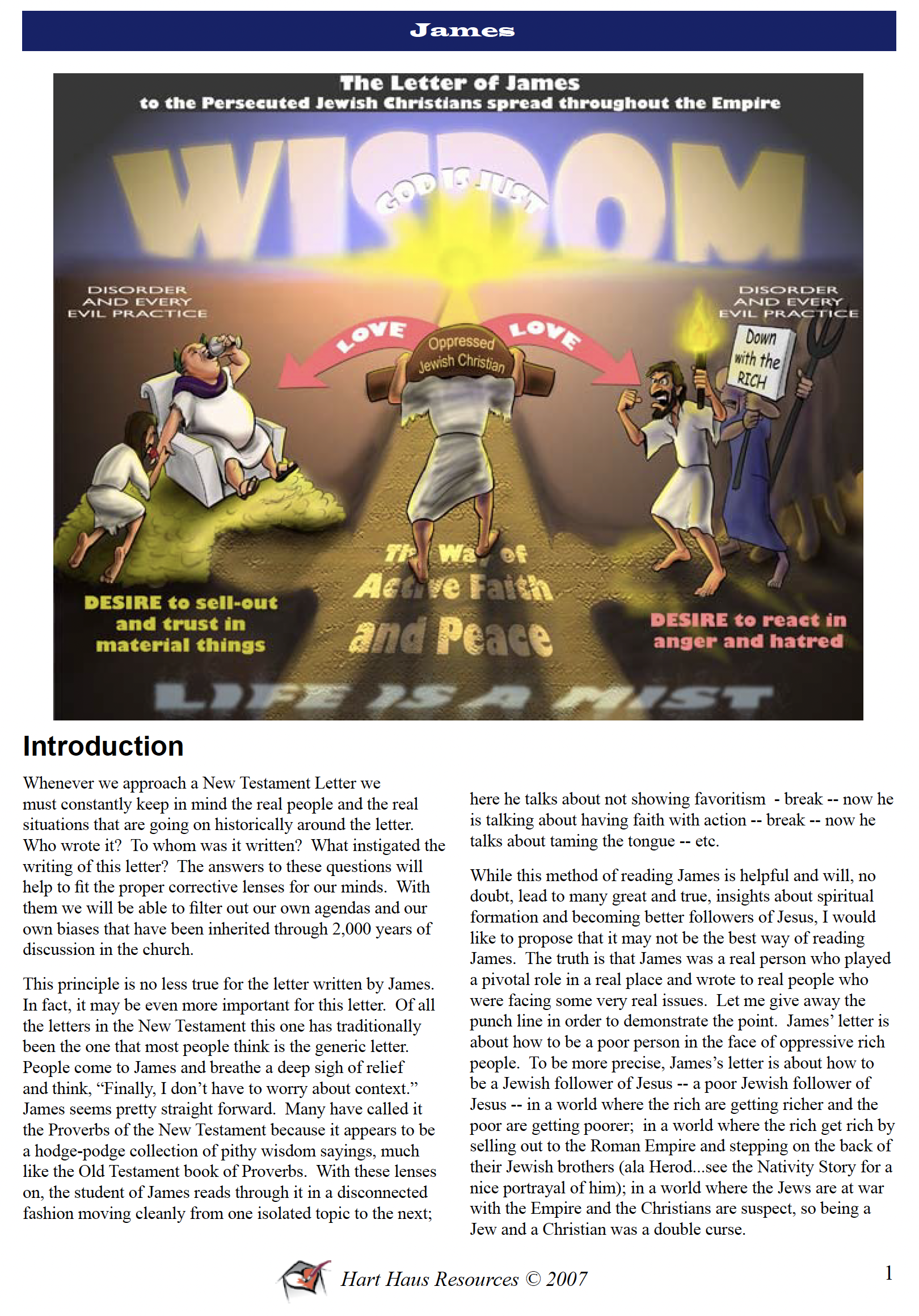 This principle is no less true for the letter written by James. In fact, it may be even more important for this letter. Of all the letters in the New Testament this one has traditionally been the one that most people think is the generic letter. People come to James and breathe a deep sigh of relief and think, “Finally, I don’t have to worry about context.” James seems pretty straight forward. Many have called it the Proverbs of the New Testament because it appears to be a hodge-podge collection of pithy wisdom sayings, much like the Old Testament book of Proverbs. With these lenses on, the student of James reads through it in a disconnected fashion moving cleanly from one isolated topic to the next; here he talks about not showing favoritism – break — now he is talking about having faith with action — break — now he talks about taming the tongue — etc.
