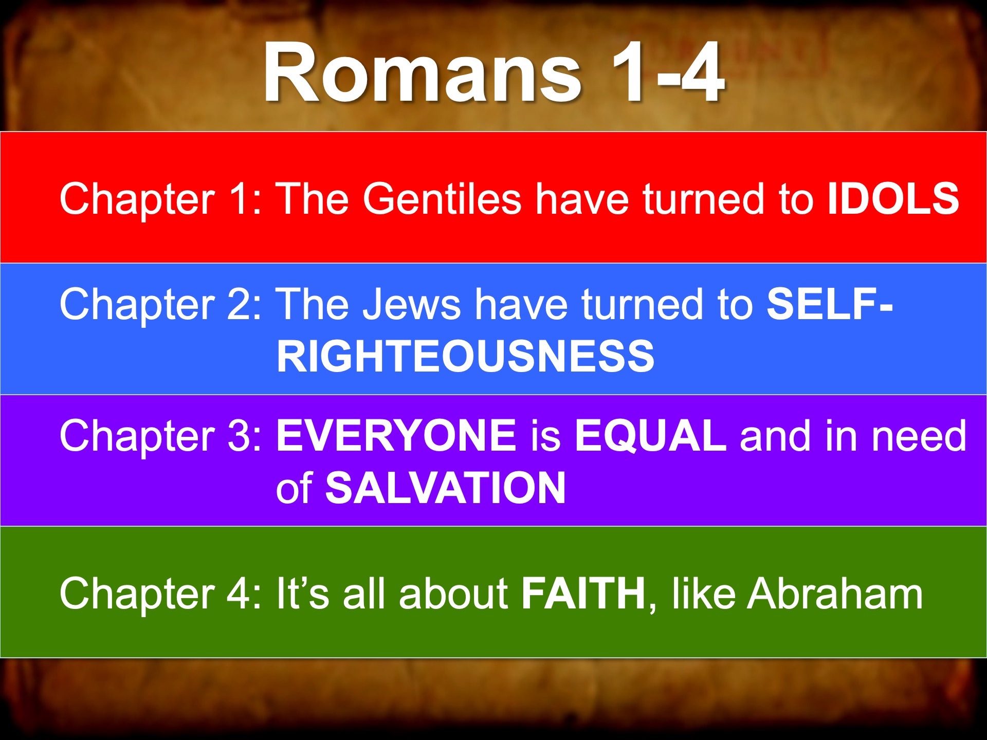 Here is the basic overview of what Paul said in the first four chapters of Romans.