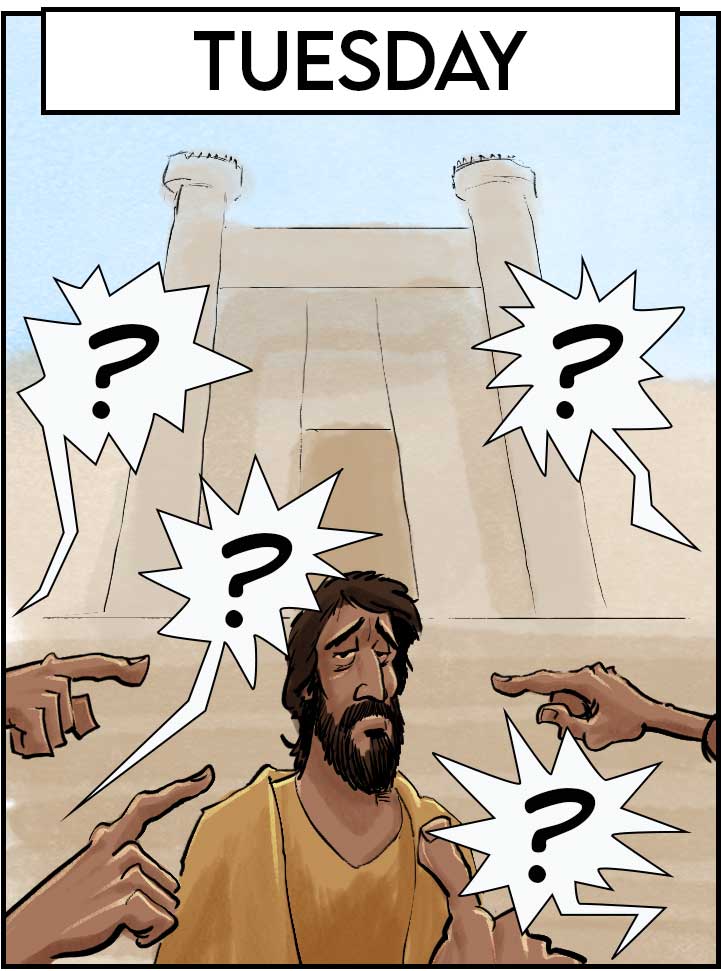 A big part of the Holy Week narrative is the series of conversations that Jesus has with the religious leaders in the Temple and regarding his view of the Mosaic Law. These conversations didn’t necessarily all happen on Tuesday, but it makes for a nice sequential story-telling device.