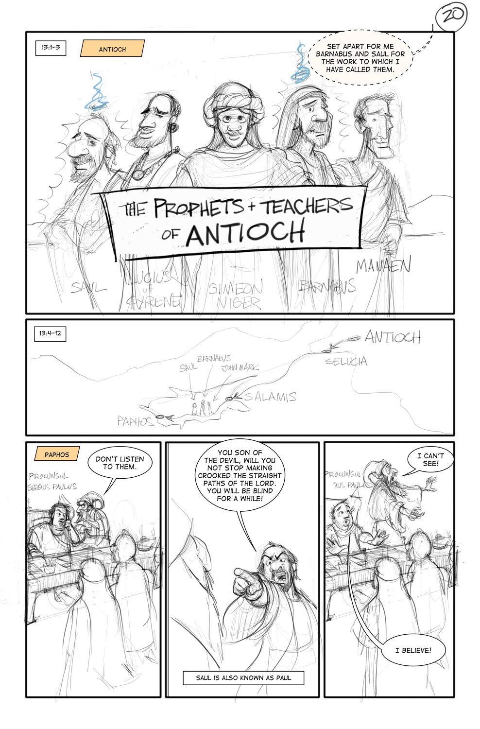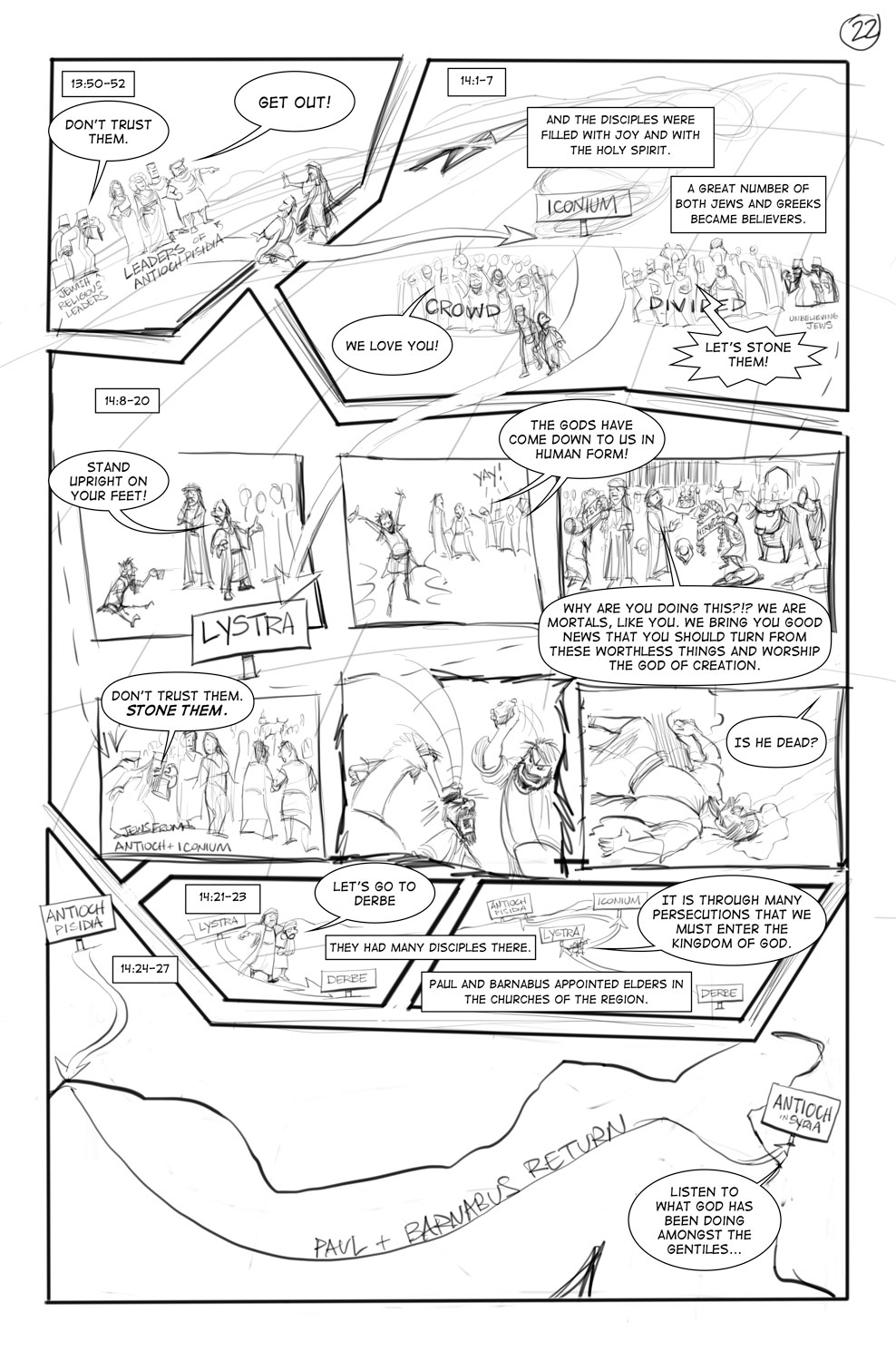 During the summer of 2023 I am illustrating the book of Acts as a graphic novel. Return often to view the updated pages below. I will post the thumbnails and then replace them with the finished pages as they emerge. Enjoy!