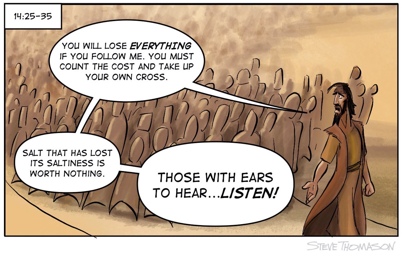 The entire travel narrative (Luke 9:51-19:27) offers a mixture of intense warnings and words of comfort. Jesus harshly accuses the religious leaders of corruption and blames them for the coming destruction. He warns his disciples that to follow him is difficult and will lead to great sacrifice and even death. Yet, in the midst of all the harsh reality, he reminds us that it is for the justice and equality brought by the true Kingdom of God that we are willing to lay down our lives.