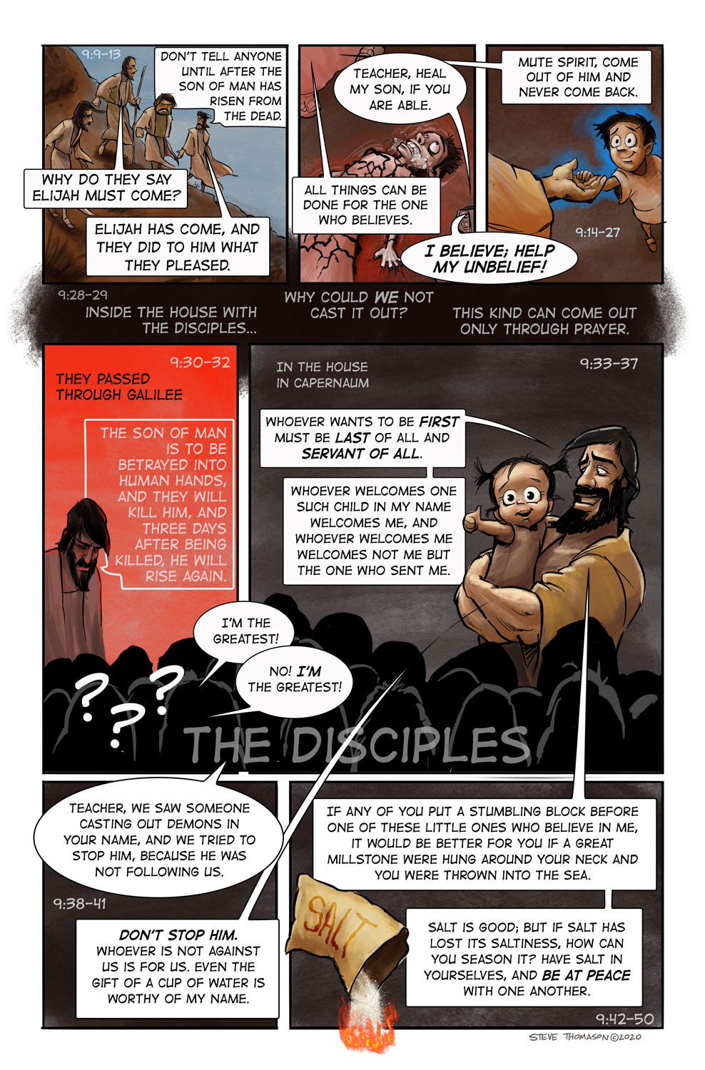 The Disciples’ inability to heal. Warning about imminent death in Jerusalem. Argument about greatness. Teaching about value. SEE, we’re going to Jerusalem. Arguments about Greatness. Healing of sight.