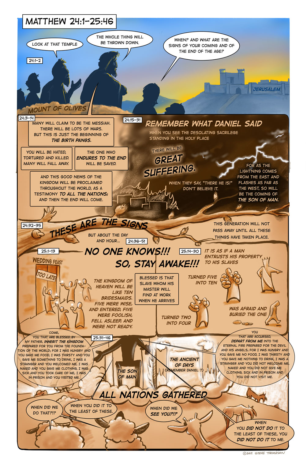 Notice the comparison chart below (see complete Gospels comparison here). Matthew is the only Gospel that expounds on Jesus’ teaching about the end of the age with three parables.