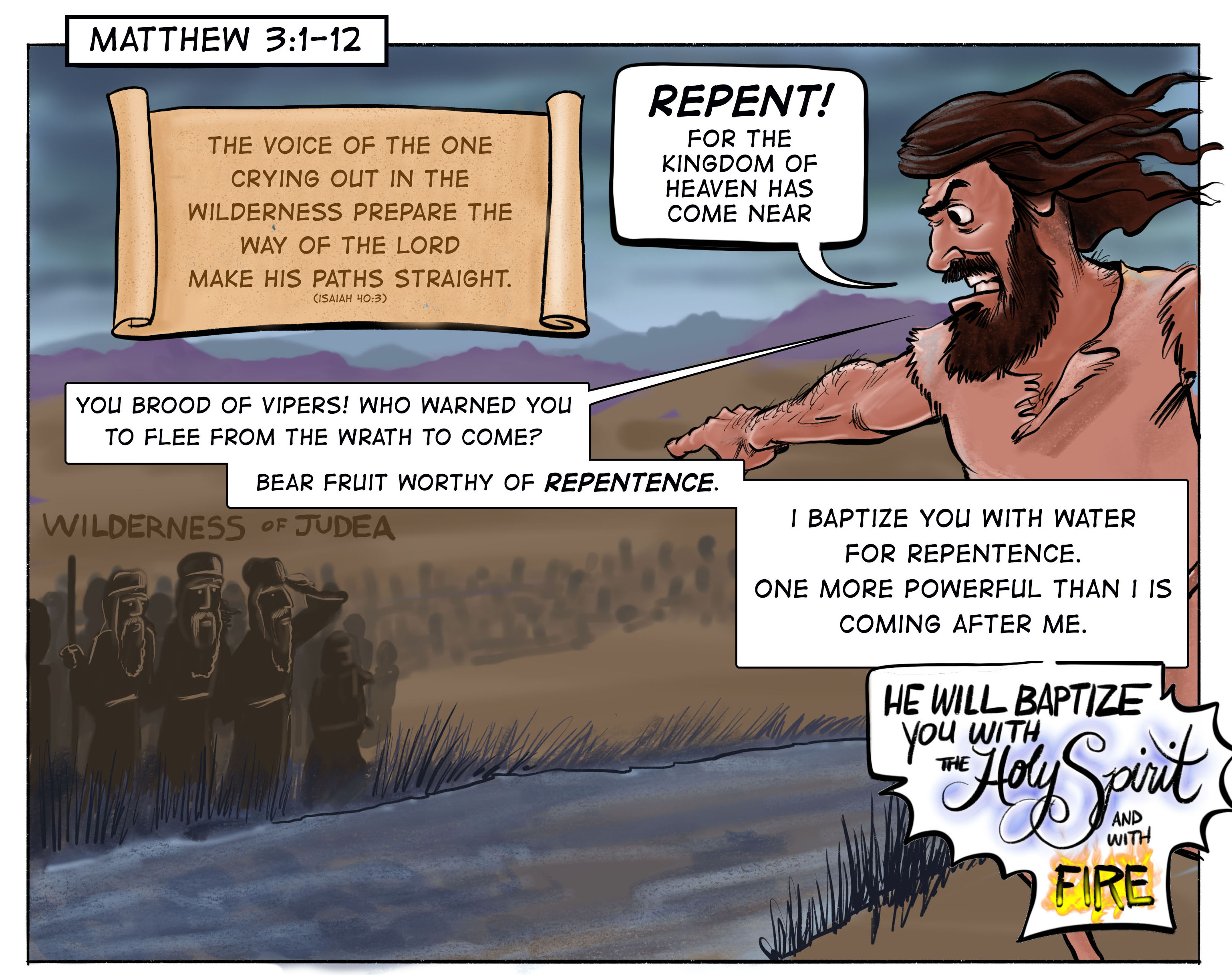 The word repent is the Greek word metanoia. It means to change one’s perspective. We can only see the Kingdom of Heaven if we have eyes to see it and ears to hear it. It is at hand. It is the way of God in the world, and always has been. That is what Jesus will demonstrate. John is paving the way and speaking in the language and style of the Hebrew prophets.