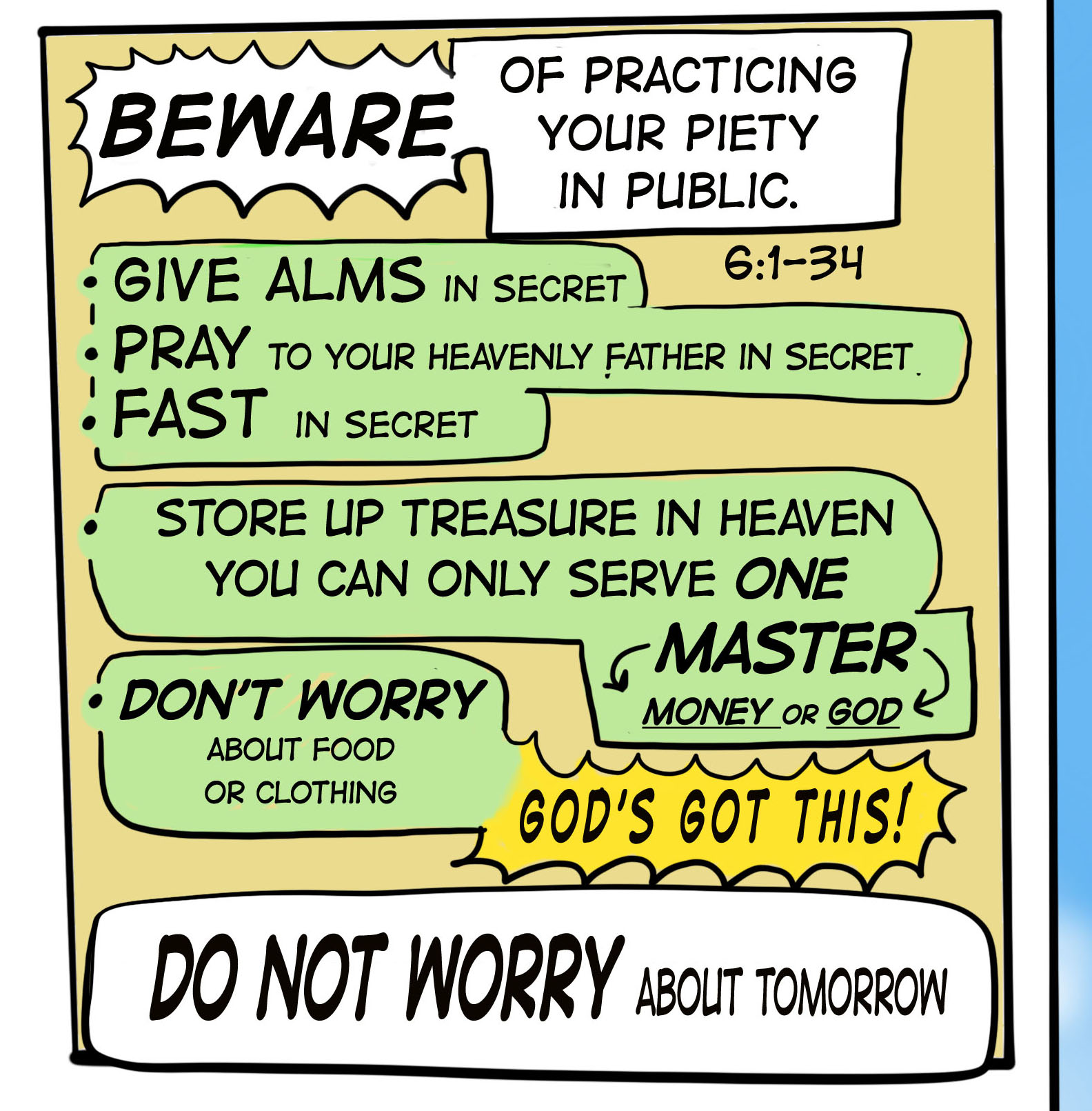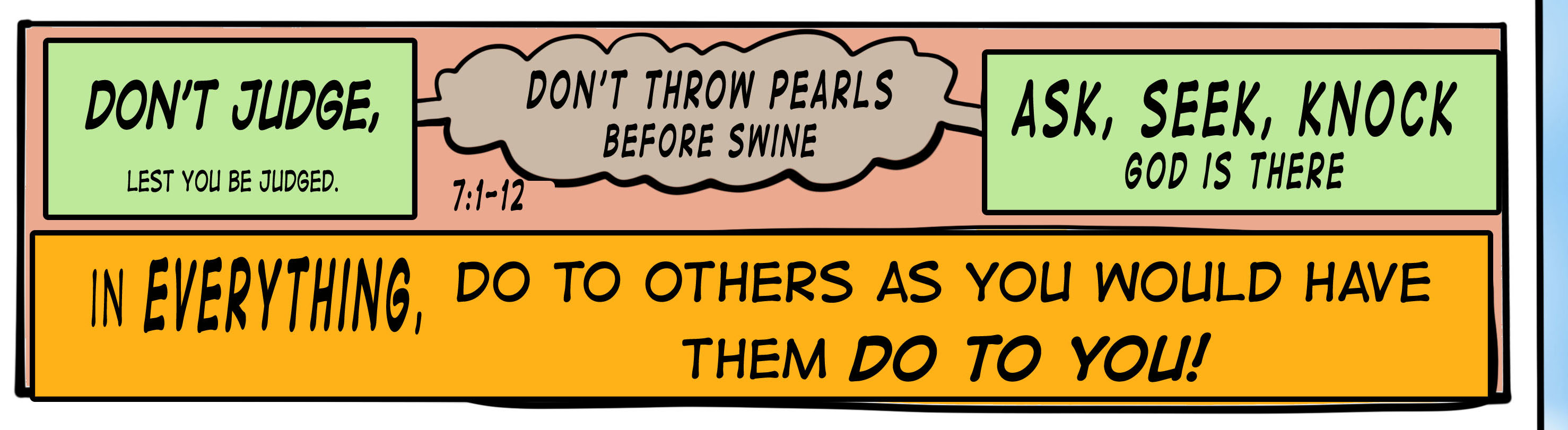 Then, Jesus sums up all his teaching in one statment. “In everything, do to others as you would have them do to you.”