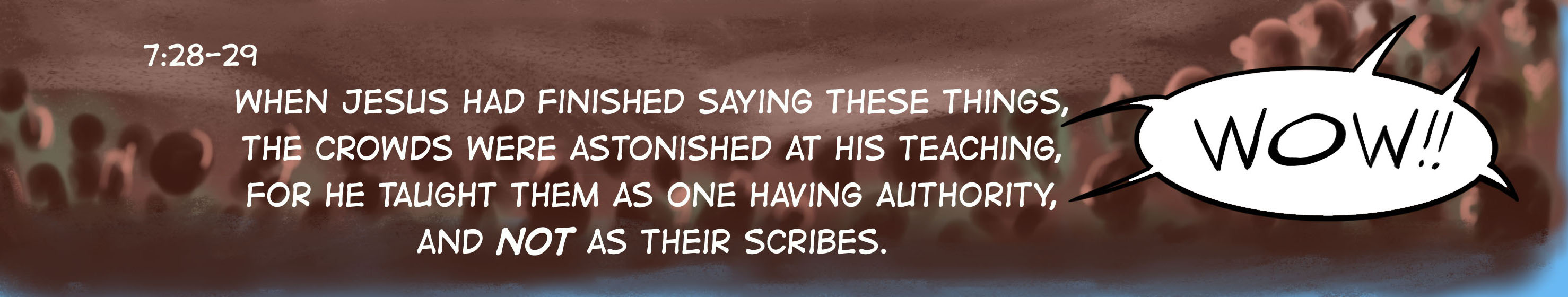 Jesus blew the crowd away. They were amazed at what he taught and how he taught it. The crowds continued to follow him as he traveled around the country preaching and healing.